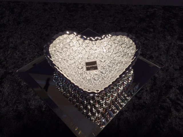 Be the first to review “Argenesi Diamante Glass Heart-Shaped Dish W/Silver Back” Cancel reply