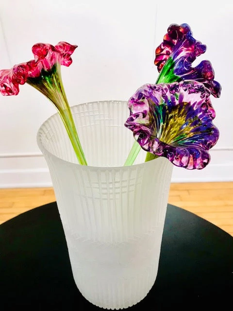 These hand-blown glass flowers will cheer you for years to come. Approximately 9 to 10″ tall.