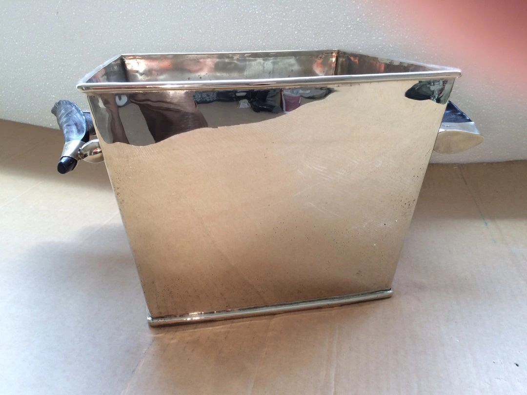 The stunning dark brown handles on the champagne bucket are made from native rustic (natural and unpolished) horn collected by the artisans from wild mountain goats, not from animals raised on a farm. Therefore, the horn handles may show evidence of the natural clashes that take place among the wild mountain goats using their horns to fight for a mate. These horns are from animals that have died naturally. The animals have not been killed for their horns.