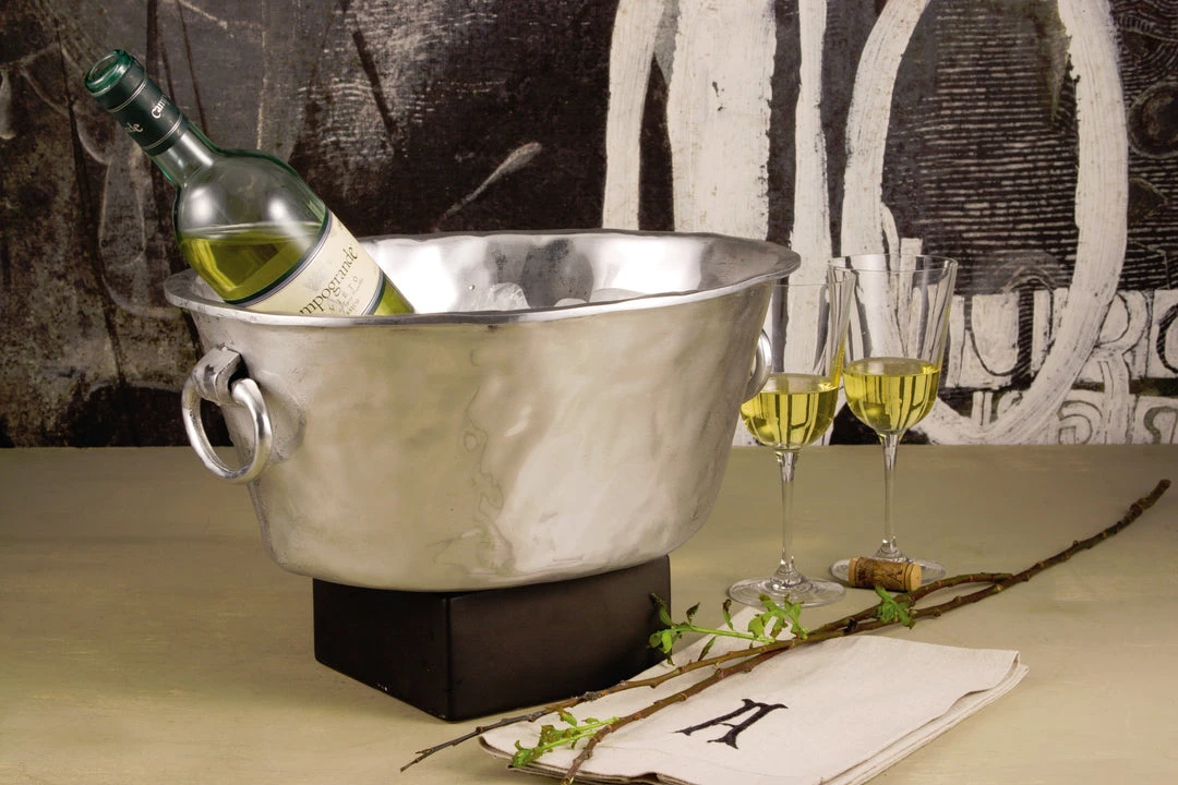 The large oval SOHO Ice Bucket is a prime example of this artistry.  It is a substantial and beautiful piece, standing about 6 and one-half inches tall and about 14 inches in diameter at its widest point (the shorter diameter is about 12 and one-half inches).Â