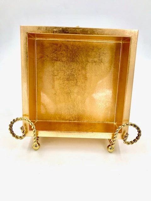 This classy, shiny gold, eye-catching cocktail napkin holder will enhance any party or event. Inside dimensions are 5 inches by 5 inches and it stands just under 2 inches tall.