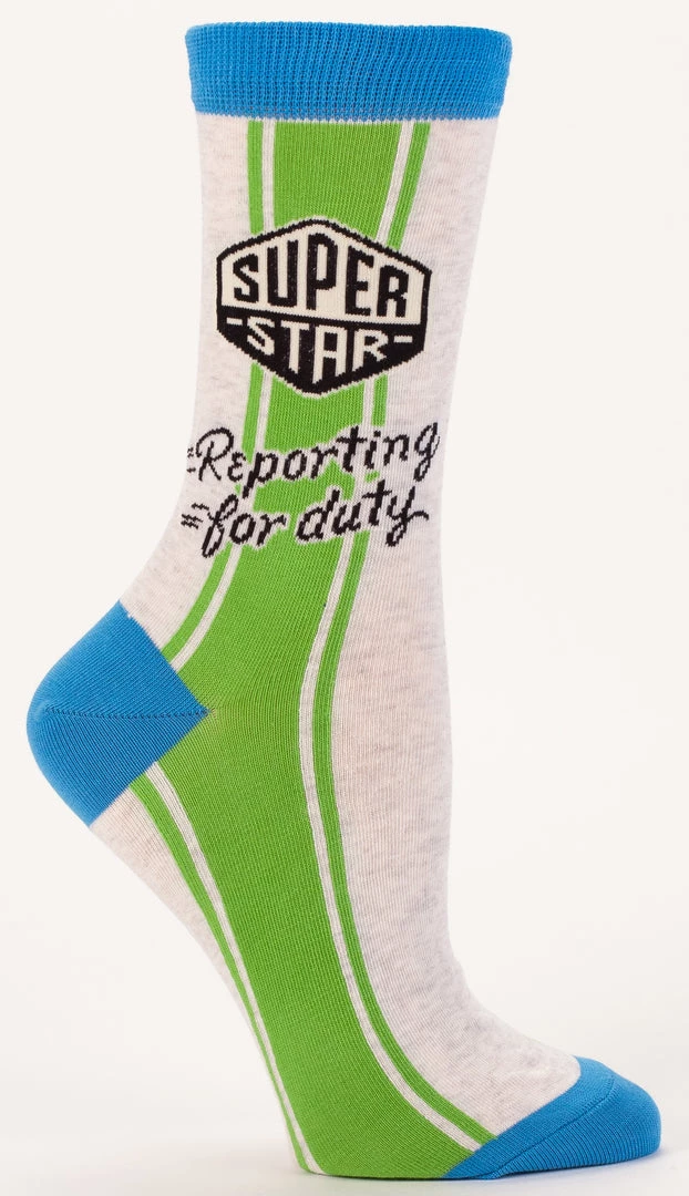 These socks are super cute and comfortable. The ‘Superstar Reporting For Duty’ print is adorable and always puts a smile on my face. The quality is great, and they wash well without losing their shape or color.