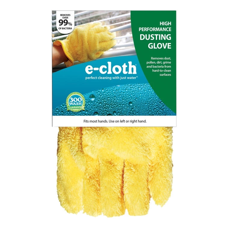 The e-cloth high-performance dusting glove is a marvel of cleaning ingenuity. Extra long, soft dry fibers attract and hold dust, pollen, dirt, grease and oil from crevices, nooks and crannies, and hard-to-dust items like banisters and railings, window blinds, louvered windows, musical instruments and small, delicate items. With e-cloth you save time (no need to use multiple tools) and money (no need to buy expensive cleaning chemicals), while enjoying better results and being kind to our environment and your family’s health (since cleaning chemicals can create health risks for children and those who may suffer from allergies, asthma and chemical sensitivities). E-cloths can be washed 300 times and still retain their unique cleaning properties.  If you wash your e-cloth dusting glove once per week, it should provide you with six years of money- and time-saving benefits. Can be used on either hand.