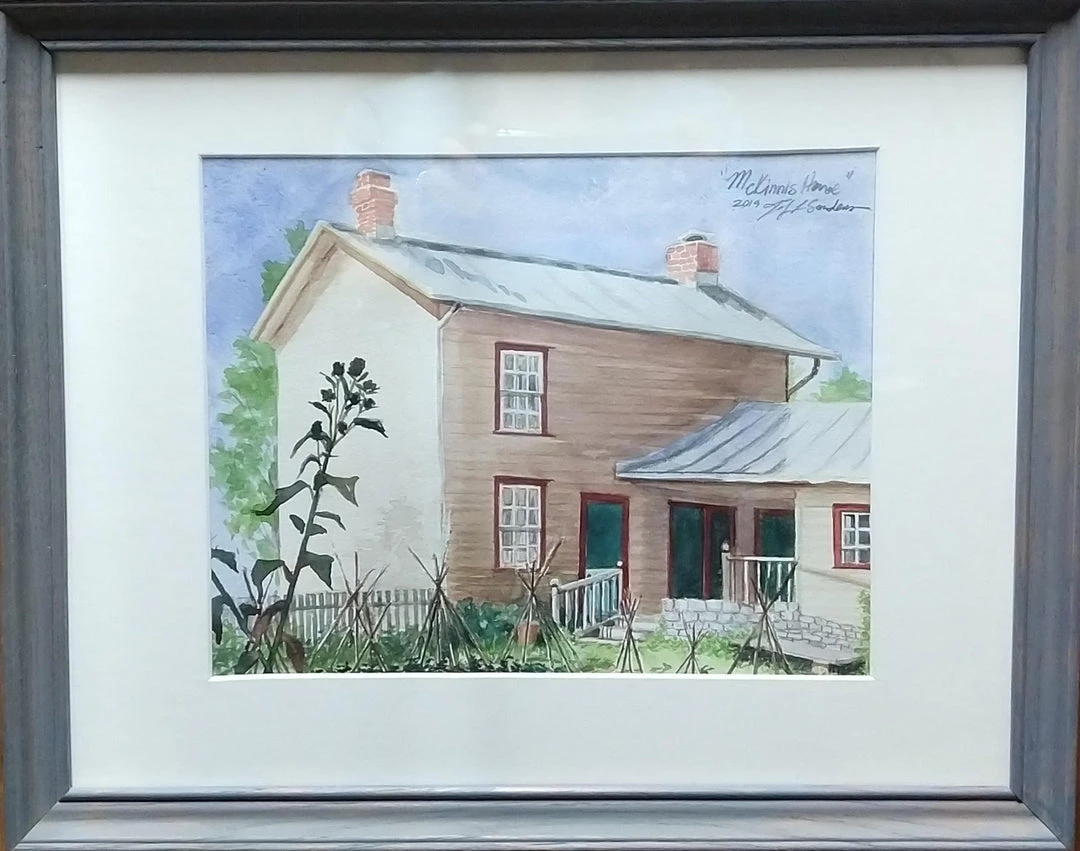 A 2019 watercolor painting by a recognized master of watercolor, the McKinnis House is 12″ x 15.25″ (framed).