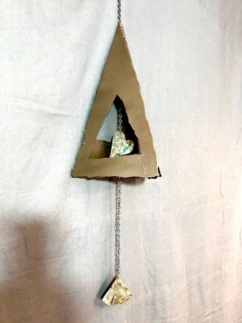 These modern versions of the traditional wind chime are cut from copper with a heart-shaped “ringer” and a ginko leaf “tail”. A most striking addition to your outdoor decor.