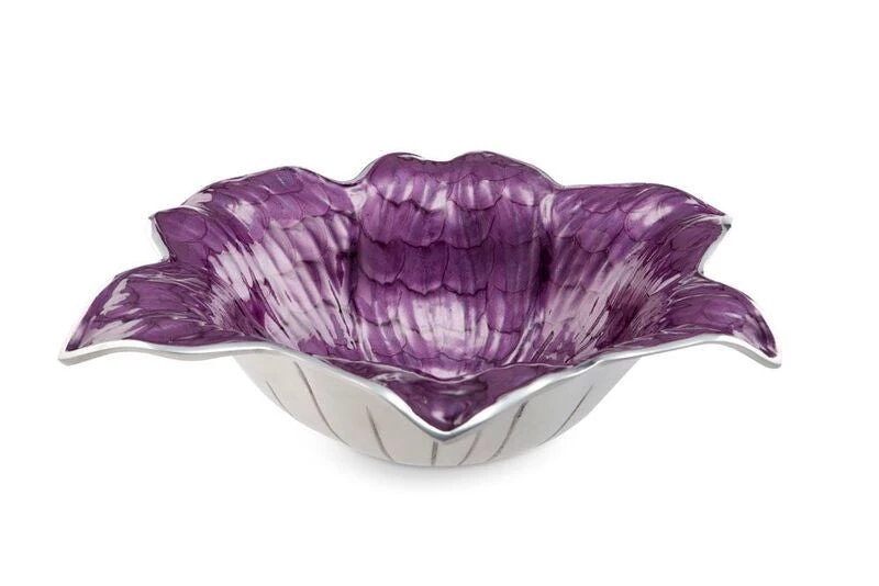 Each piece of Julia Knight’s Lily serveware line is a unique, sculptural work of art. Sandcast by hand in high grade, food-safe aluminum, each piece is hand painted with their trademark color enamel that is mixed with crushed Mother of Pearl for an especially lustrous finish. Due to these hand crafted processes by skilled artisans, small variations will occur in the material, coloring and/or finish of the product, adding to the uniqueness and distinctive beauty of each piece.