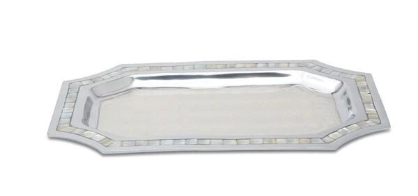 Each piece of Julia Knight’s Classic serveware line is a unique, sculptural work of art. Sandcast by hand in high grade aluminum, each piece is hand painted with their trademark color enamel that is mixed with crushed Mother of Pearl for an especially lustrous finish. The Classic line also possesses a decorative trim of real mother of pearl on the rim. Due to these hand crafted processes by skilled artisans, small variations will occur in the material, coloring and/or finish of the product, adding to the uniqueness and distinctive beauty of each piece.