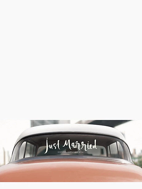 Let’s do it right! Professional window cling announces “Just Married”. 8 inches by 22 1/2 inches.