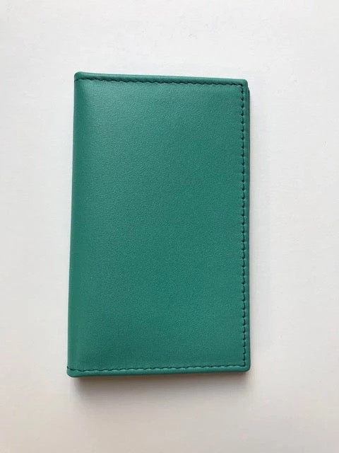 These very nice four-card wallets (with an additional drivers license see-through slot) are hand-crafted in Ecuador and Peru in two sizes: classic (4 and 5/8″ by 3 and 3/4″ and skinny (4 and 3/8″ by 2 and 3/4″) and a variety of colors.