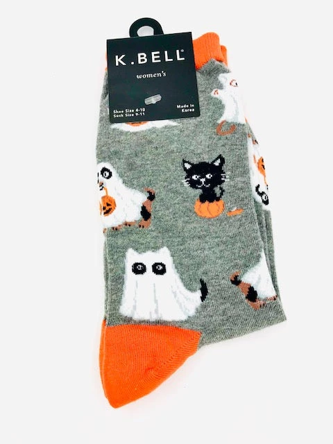 If Halloween is one of your favorite holidays, then you need a pair of these socks to complete your celebration. Two styles: scary cat socks, and scary ghost socks.