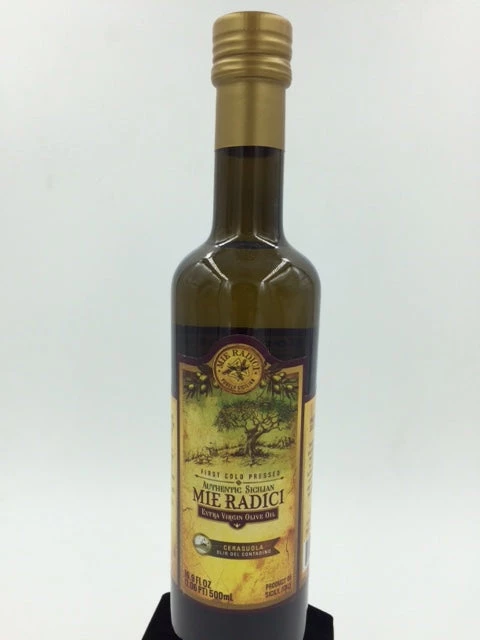 Mie Radici is passionate about what they do and are focused on only bringing you quality Sicilian EVOO. The olives are carefully selected and immediately taken to a state of the art mill to be cold-pressed. We guarantee that this olive oil is never cut with a “lesser” oil. Only Cerasuola olives located in the Agrigento region of Sicily are used and Cold-Pressed to ensure the product we provide is always a quality one. This olive oil was pressed and bottled on 11/10/16 and should be consumed by 11/10/18.