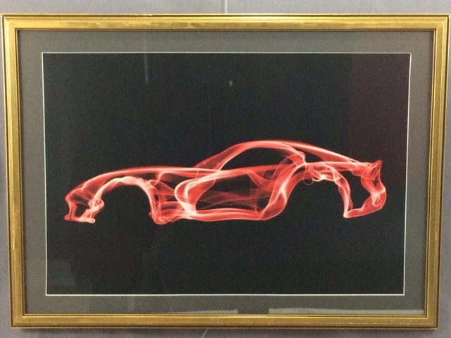 The Dodge Viper print is an excellent example of his technique. The print is framed in a vintage museum-quality wooden gold painted frame (from the Mazza Museum at The University of Findlay) under museum quality glass and measures 27 inches by 19 and one-half inches. The print is also available unframed.