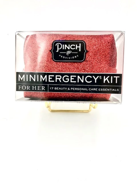 With 17 beauty, personal care, and style essentials, this glitter style pouch contains everything a gal needs…IN A PINCH®!