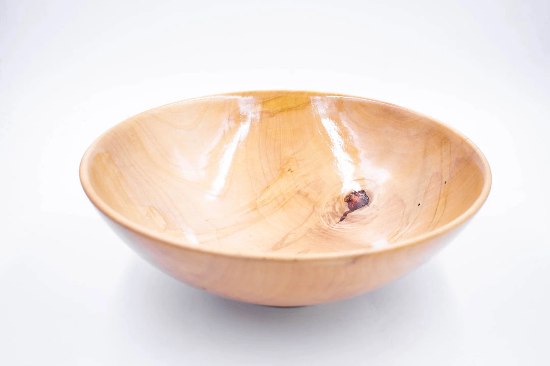Ambrosia maple is a term that is commonly applied to wood from eastern red and silver maples that has streaks of color caused by beetles. It is these characteristic streaks of color that give this bowl its fluid and dramatic design. The bowl is approximately 11 and one half inches in diameter and the rim sits approximately 4 inches above the base. Numbered (#2478) and signed by the artist, Richard Ruehle, who lives and works in Findlay, OH.
