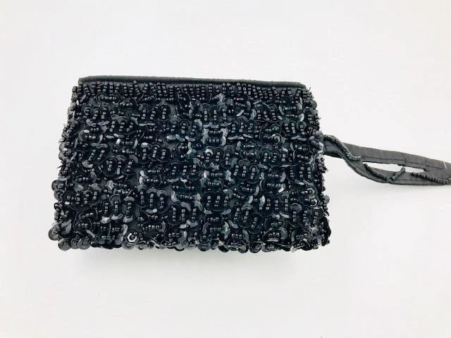 The Evening purse is pure black with shiny black beads. Â It creates a very sophisticated and beautiful look.
